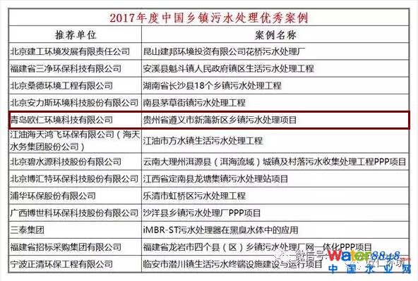 祝賀 歐仁環(huán)境公司入選2017年度中國鄉(xiāng)鎮(zhèn)污水處理優(yōu)秀案例