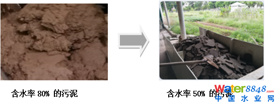 此項目配備了一套完整的污泥高干脫水系統(tǒng),包括濃縮池、電催化污泥設(shè)備、儲泥池及鼓膜板框機等,滿產(chǎn)能力為10t/d(50%的含水率),換算成含水率為80%泥餅為25t/d,即相當于日處理能力為5萬噸污水廠的污泥處理規(guī)模。