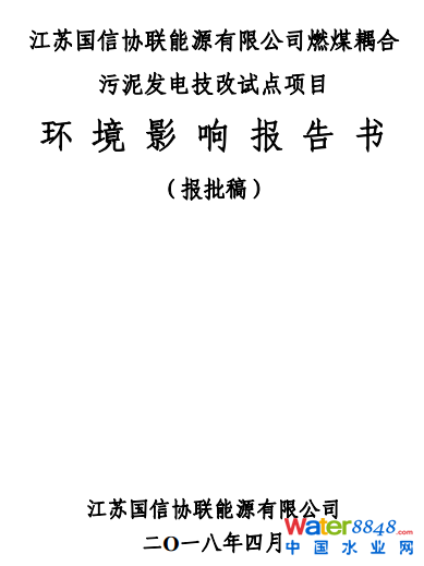 2018年4月,江蘇國信協(xié)聯(lián)能源有限公司燃煤耦合污泥發(fā)電技改試點項目環(huán)評全本公示