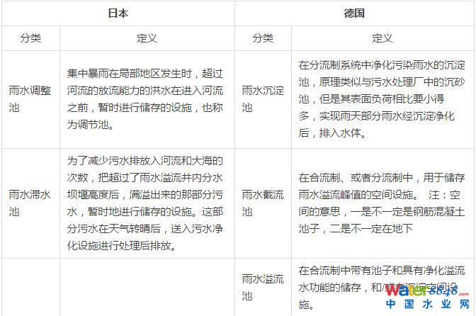 讓我們先來看國際上雨水管理技術(shù)較為先進(jìn)的德國和日本是如何對雨水調(diào)蓄池進(jìn)行分類和定義的: