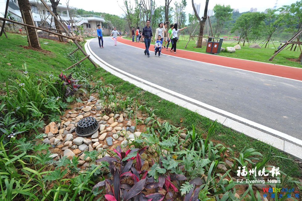 福州海綿城市建設(shè)步入“快車道” 多個項目10月完工 目前,植草溝、雨水花園、滲透塘等多個漂亮的“海綿體”已在小區(qū)內(nèi)建成 和雨水花園相互配合的還有植草溝、下凹綠地、透水鋪裝等