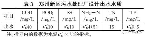 鄭州新區(qū)污水處理廠尾水排入小清河,最終匯入賈魯河。根據(jù)環(huán)評(píng)要求,排放標(biāo)準(zhǔn)按賈魯河陳橋斷面水質(zhì)目標(biāo)進(jìn)行控制,出水水質(zhì)如表3所示,優(yōu)于GB 18918-2002一級(jí)A標(biāo)準(zhǔn)。