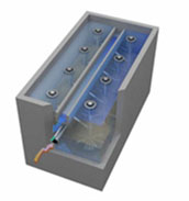 大功率連續(xù)流砂過濾設(shè)備通常由過濾組件組成并建在水泥池中。過濾組件由不銹鋼或玻璃鋼錐形底部和內(nèi)部構(gòu)件組成,水泥池和獨立式過濾哪一種方式更經(jīng)濟要根據(jù)實際的過濾方案與具體的條件確定。 這種類型過濾器安裝時,所有過濾單元(每個單元由多個過濾組件組成)共用一個砂床。一套設(shè)備實質(zhì)上沒有過濾面積限制,因此連續(xù)流砂過濾器可以應(yīng)用在處理相當(dāng)于100000或更多人口用水的大型水廠和污水處理工廠。