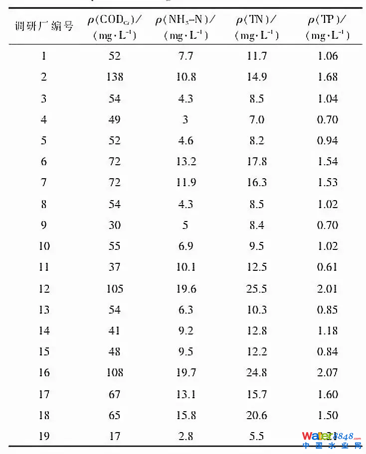 巢湖流域現(xiàn)有村鎮(zhèn)污水處理廠實際進水水質調研結果