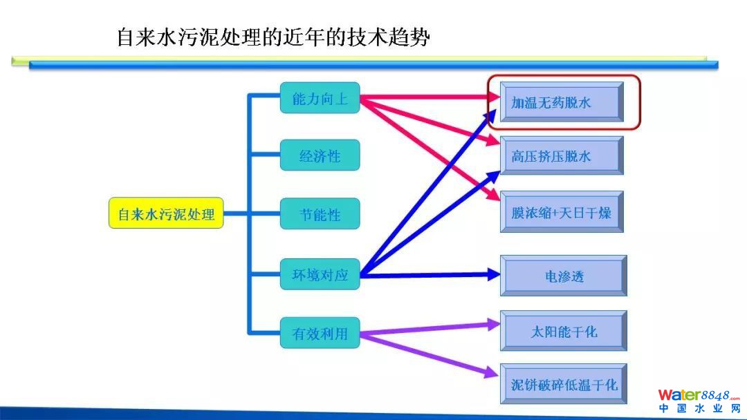 近年來自來水污泥處理的技術(shù)主要有加溫無藥脫水、高壓擠壓脫水、膜濃縮協(xié)同天然干燥、電滲透,如需將自來水污泥制成再生土可有效提高自來水污泥的資源化利用率,主要有:破碎后太陽能干化或低溫干化處置。加溫無加藥脫水是主流工藝,在無熱源前提下可采用投加PAM配合濾布行走式板框機進行深度脫水。