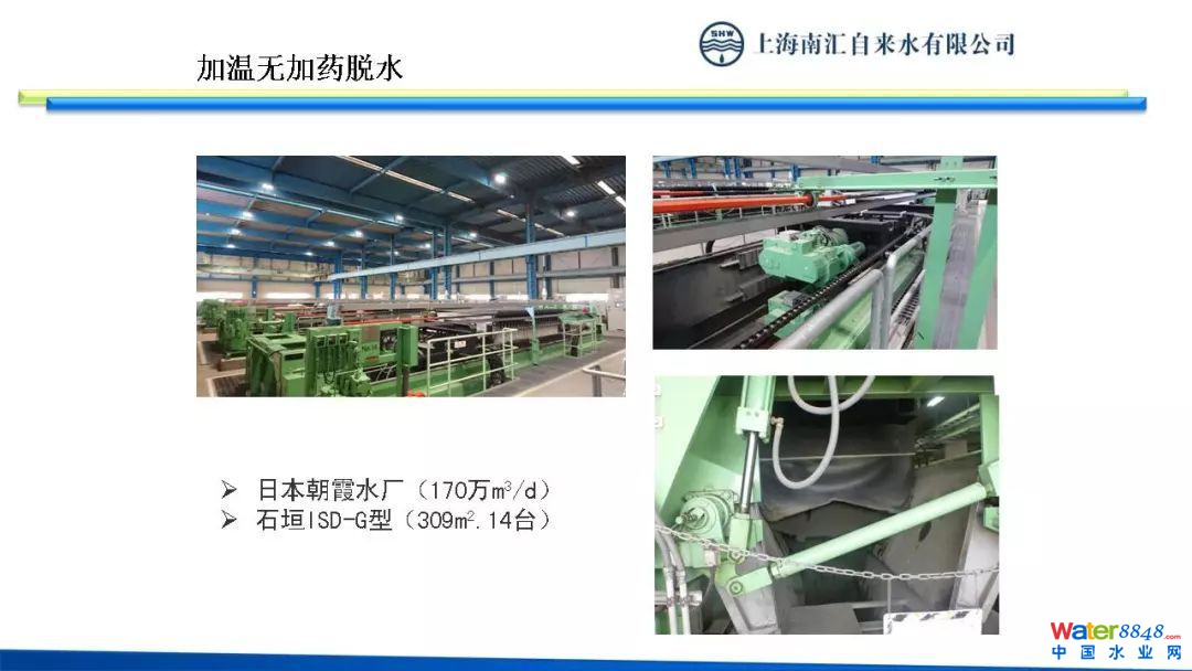 日本朝霞水廠170m3/d,日本第二大水廠,隸屬東京都水道局,采用污泥加溫無加藥脫水工藝,14臺石垣ISD-G型濾布行走式板框機。