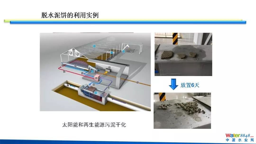 通過將脫水后泥餅放置6天發(fā)現(xiàn)泥餅干裂,有較高的強度,凈水污泥中有機物主要為藻類、微生物,易腐敗的有機物較少,經(jīng)板框脫水后的污泥可采用破碎后,利用太陽能污泥干化,進一步降低污泥含水率,提高污泥資源化利用范圍。