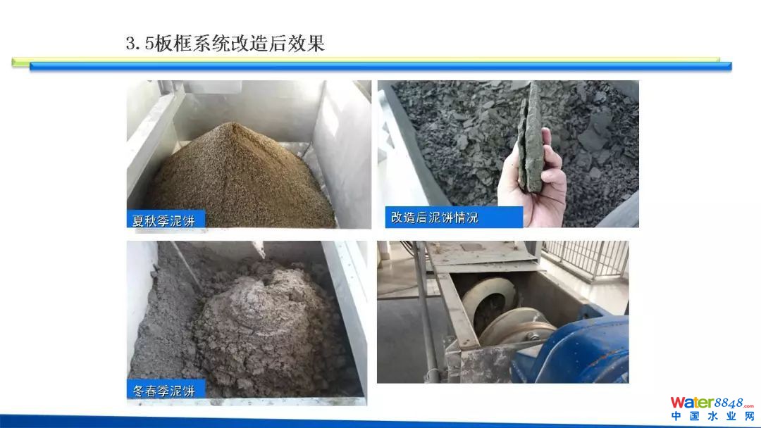 2、冬季泥溫較低,只有5-8℃,污泥粘度增大,板框機過濾速度大幅降低,同時會造成濾布難以沖洗干凈,泥餅剝離困難,處理效率較夏季降低50%。