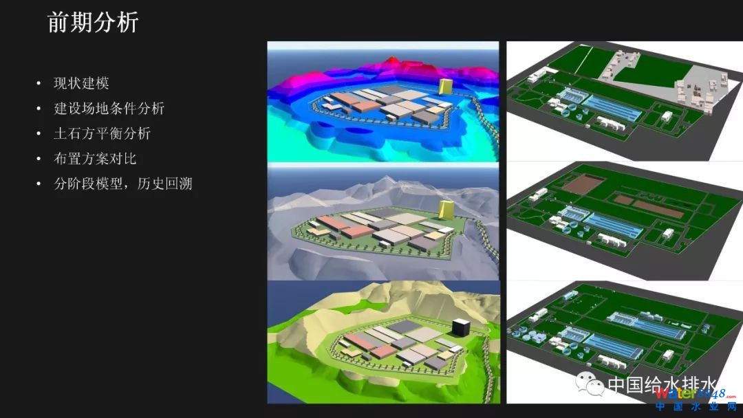 項(xiàng)目前期策劃階段對(duì)整個(gè)建筑工程項(xiàng)目的影響是很大的。前期策劃做得好,隨后進(jìn)行的設(shè)計(jì)、施工就會(huì)進(jìn)展順利;而前期策劃做得不好,將會(huì)對(duì)后續(xù)各個(gè)工程階段造成不良的影響。項(xiàng)目的前期應(yīng)用BIM,使項(xiàng)目所有利益相關(guān)者能夠早一點(diǎn)在一起參與項(xiàng)目的前期策劃,讓每個(gè)參與方都可以及早發(fā)現(xiàn)各種問(wèn)題并做好協(xié)調(diào)。BIM在項(xiàng)目前期可以進(jìn)行的工作有很多,包括:現(xiàn)狀建模與模型維護(hù)、場(chǎng)地分析、土石方平衡計(jì)算、布置方案必選等,甚至于如右邊這張圖所示的,對(duì)于廠區(qū)現(xiàn)狀拆遷、施工平整、建成后的各個(gè)階段都可以整合在一個(gè)模型里,模型沿時(shí)間跨度上進(jìn)行了整合。