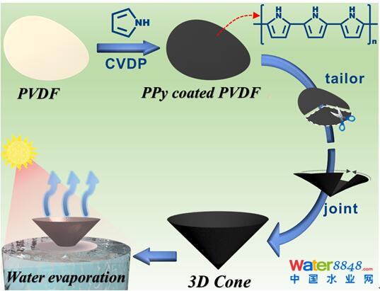 圖1. 聚吡咯基3D空心錐形光熱膜的制備示意圖