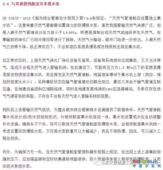天然氣管道單獨(dú)設(shè)艙,天然氣管道產(chǎn)權(quán)單位投資大,管廊運(yùn)營單位和天然氣產(chǎn)權(quán)單位運(yùn)行費(fèi)用高。