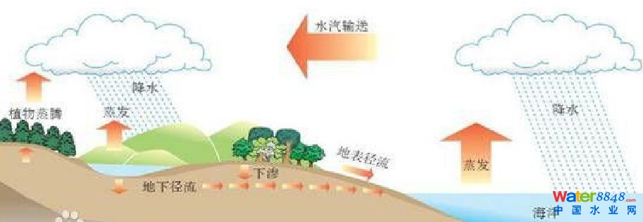 大氣的水汽循環(huán)運(yùn)動(dòng)基本上包括四個(gè)過(guò)程:蒸騰、水汽運(yùn)動(dòng)、降雨和回歸大海。其中蒸騰和回歸大海這兩個(gè)過(guò)程的水量都只有10%~30%。研究小尺度城市范圍內(nèi)的水循環(huán),主要是研究其降雨與徑流之間的關(guān)系。