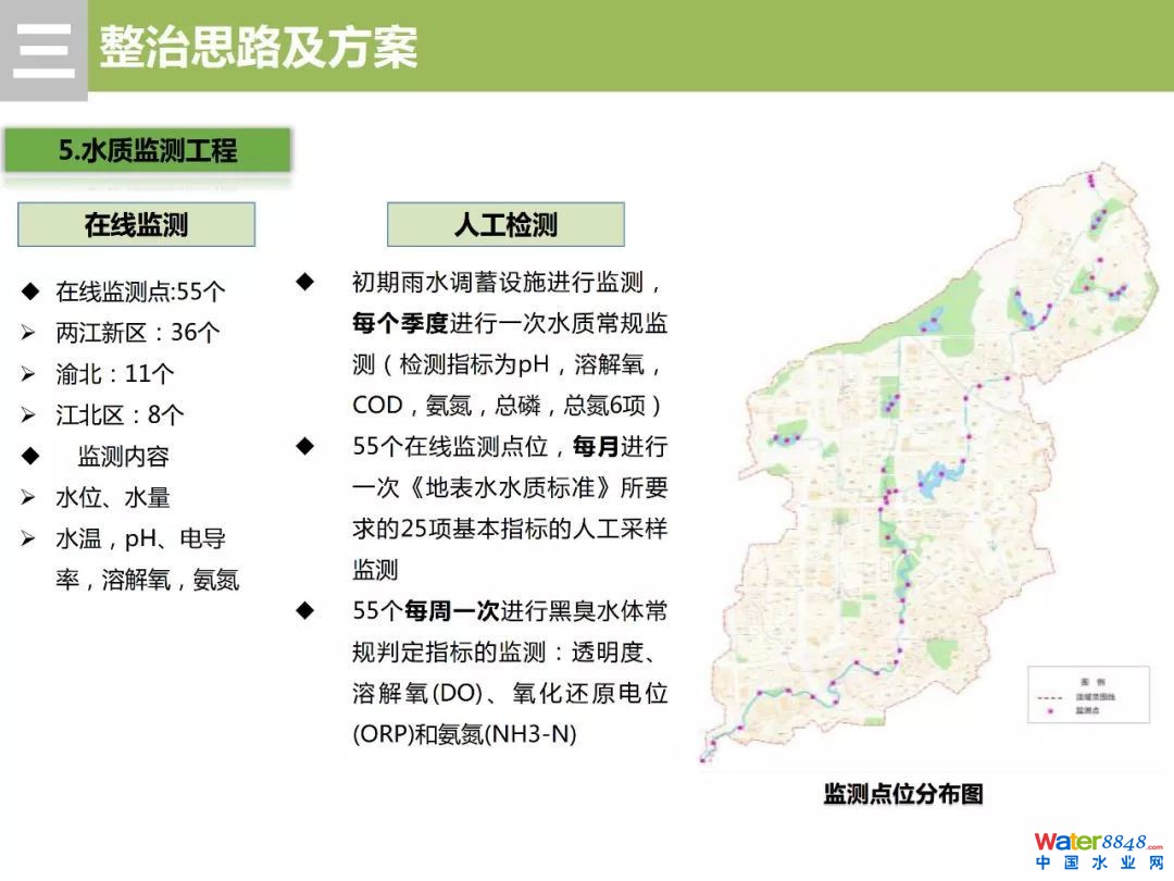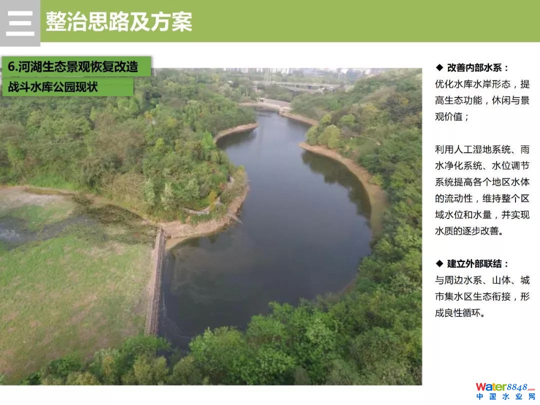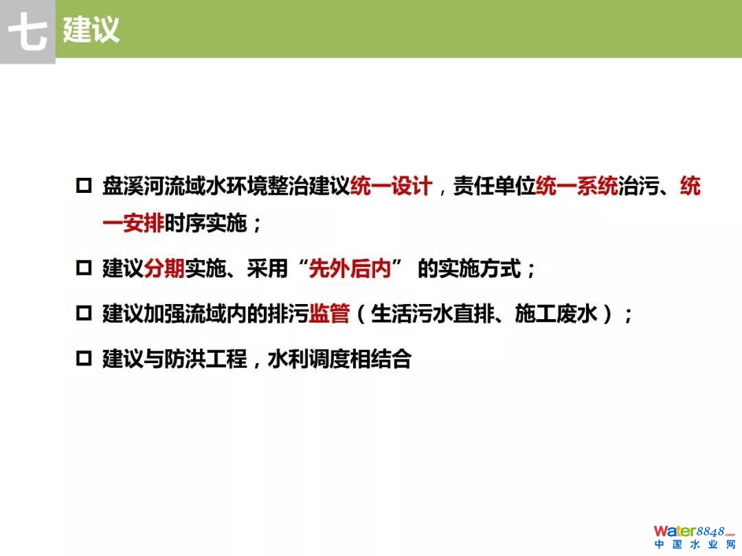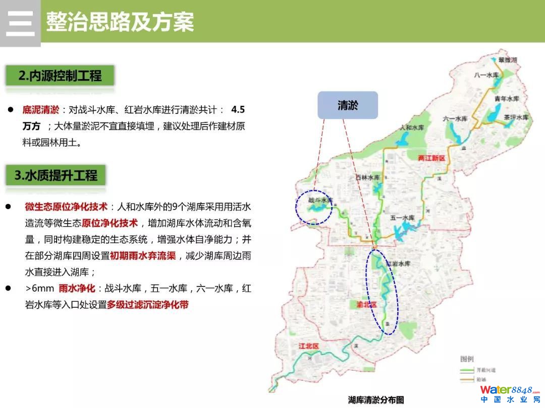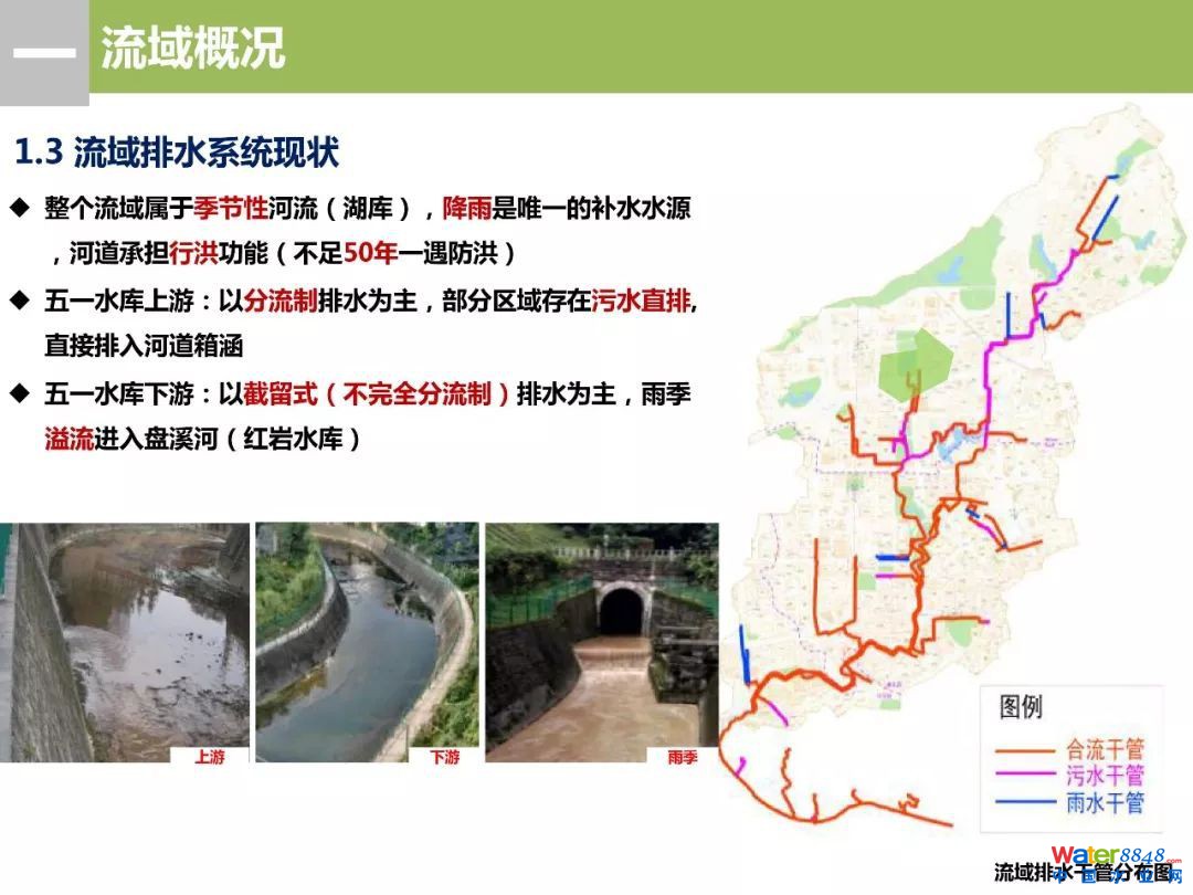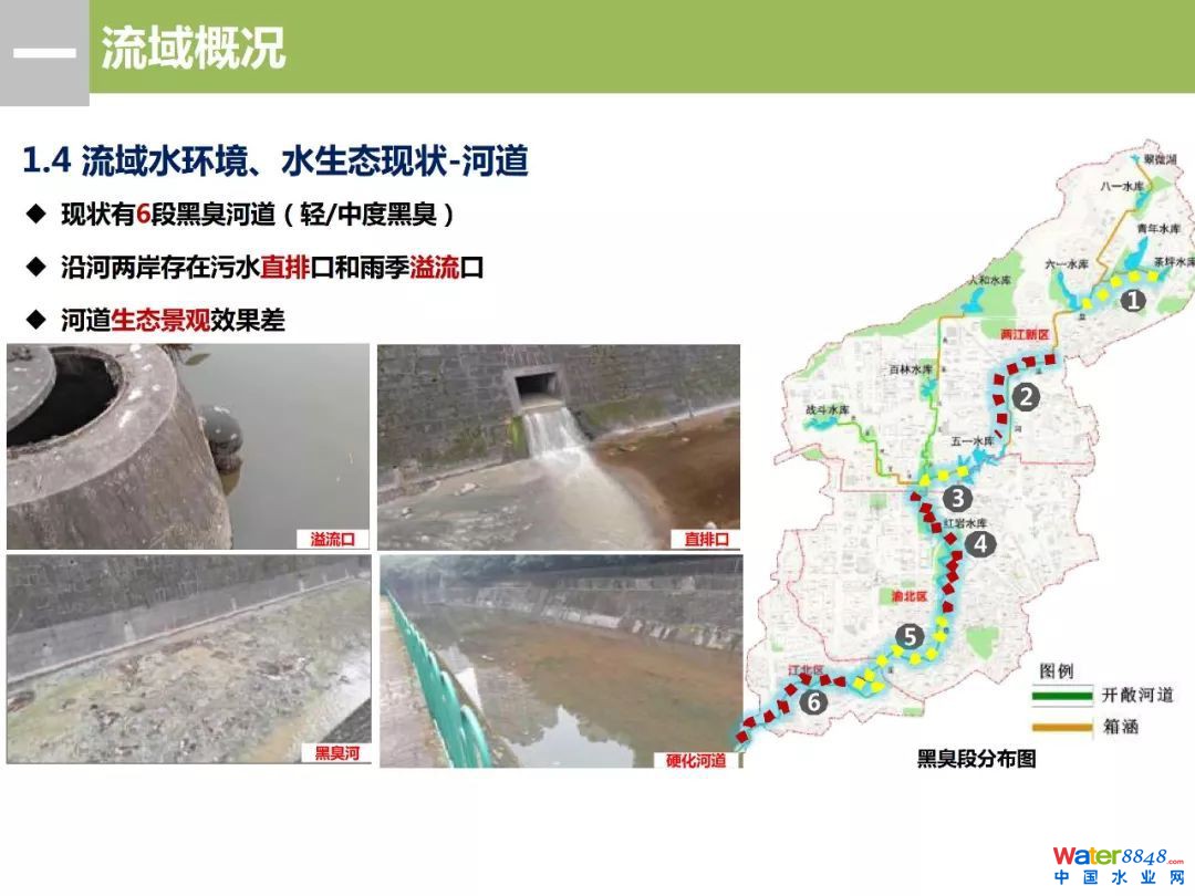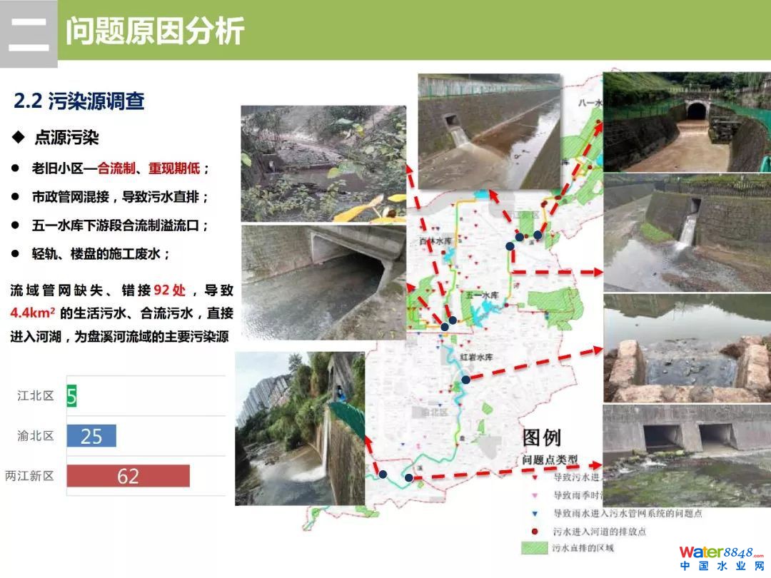 摘要:在5月份《中國給水排水》第八屆城市雨污水管理會議上,重慶市市政設(shè)計研究院城環(huán)分院的靳俊偉副院長,分享了盤溪河流域水環(huán)境綜合整治工程的具體情況。盤溪河源頭位于重慶兩江新區(qū),流經(jīng)兩江新區(qū)、渝北和江北三區(qū)。盤溪河流域范圍面積約28.13km2,上游有翠微湖、八一水庫等10個水庫,水源主要是以上幾個水庫和流域區(qū)域的雨水。長期以來,由于上游排水箱涵雨污合流、箱涵服務(wù)范圍內(nèi)的雨水徑流污染、盤溪河內(nèi)源污染消除不徹底等原因,導(dǎo)致盤溪河內(nèi)水質(zhì)逐漸惡化,存在黑臭現(xiàn)象,群眾反映強烈,亟需實施水環(huán)境綜合整治,凈化水體水質(zhì),消除水體黑臭,恢復(fù)水生生態(tài)系統(tǒng)健康。受重慶市環(huán)保局委托,重慶市市政設(shè)計研究院2016年編制了盤溪河流域整治方案。重點調(diào)查了盤溪河水環(huán)境污染現(xiàn)狀,特別是對外源和內(nèi)源進(jìn)行排查和監(jiān)測,剖析了水體污染成因。通過對盤溪河污染源的預(yù)測及河水環(huán)境容量模型的計算,科學(xué)提出了水體污染物消減目標(biāo)。根據(jù)污染消減目標(biāo),進(jìn)一步提出了截斷外源、治理內(nèi)源,逐步建立水生生態(tài)系統(tǒng)和岸邊生態(tài)修復(fù)等綜合治理措施,對盤溪河流域的水環(huán)境進(jìn)行綜合治理和打造,以期實現(xiàn)水生生態(tài)環(huán)境與人文資源均衡發(fā)展的新型濱水空間格局。