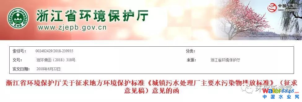 類IV標(biāo)準(zhǔn)!浙江發(fā)布《城鎮(zhèn)污水處理廠主要水污染物排放標(biāo)準(zhǔn)》(征求意見稿)!