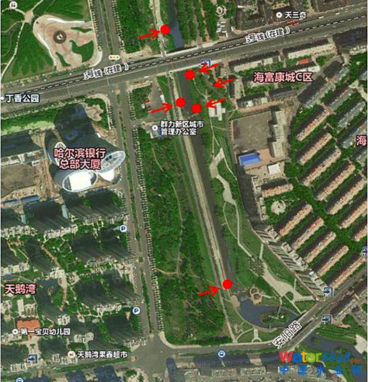 經(jīng)抽樣監(jiān)測,道里區(qū)何家溝天鵝灣社區(qū)附近排放污水的2個排污口,水質(zhì)分別為:康安橋南跌水壩下大排污口,化學(xué)需氧量319 mg/L,氨氮27mg/L;康安橋排污口,化學(xué)需氧量234 mg/L,氨氮37.4mg/L。超過污水處理廠排放標(biāo)準(zhǔn)的3-7倍。督查組收到群眾舉報的何家溝13個排污口問題,經(jīng)督查組沿河實地查看,何家溝天鵝灣社區(qū)至松花江入口段3公里的距離內(nèi)確有13個排水口,群眾舉報信息屬實。