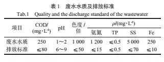 某顏料有限公司是目前中國(guó)氧化鐵行業(yè)生產(chǎn)量最大、銷售量最高、出口創(chuàng)匯最多的化工企業(yè),年產(chǎn)氧化鐵顏料92000噸,產(chǎn)品有氧化鐵紅、鐵黃、鐵黑、鐵橙、鐵棕、鐵綠,以及超細(xì)、耐高溫等深加工系列產(chǎn)品50多個(gè)。設(shè)計(jì)處理量為3000m3/d,所排放的廢水主要是生產(chǎn)工藝廢水和地面沖洗廢水,經(jīng)處理后直接排放,要求達(dá)到污水綜合排放標(biāo)準(zhǔn)(GB8978-1996)一級(jí)排放標(biāo)準(zhǔn),設(shè)計(jì)進(jìn)出水質(zhì)及排放標(biāo)準(zhǔn)見表1。