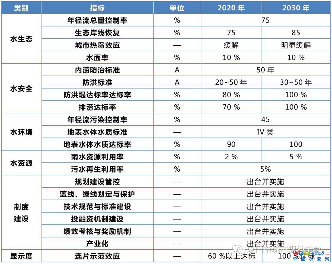 根據(jù)住房城鄉(xiāng)建設(shè)部印發(fā)的《海綿城市建設(shè)績(jī)效評(píng)價(jià)與考核辦法(試行)》,并結(jié)合實(shí)際問題和需求,選取6大類共20項(xiàng)建設(shè)指標(biāo),并確定規(guī)劃目標(biāo)如下: