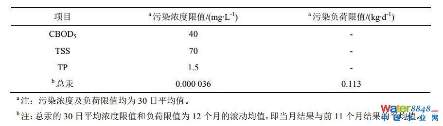 表2 監(jiān)測點(diǎn)049B的出水污染物排放限值
