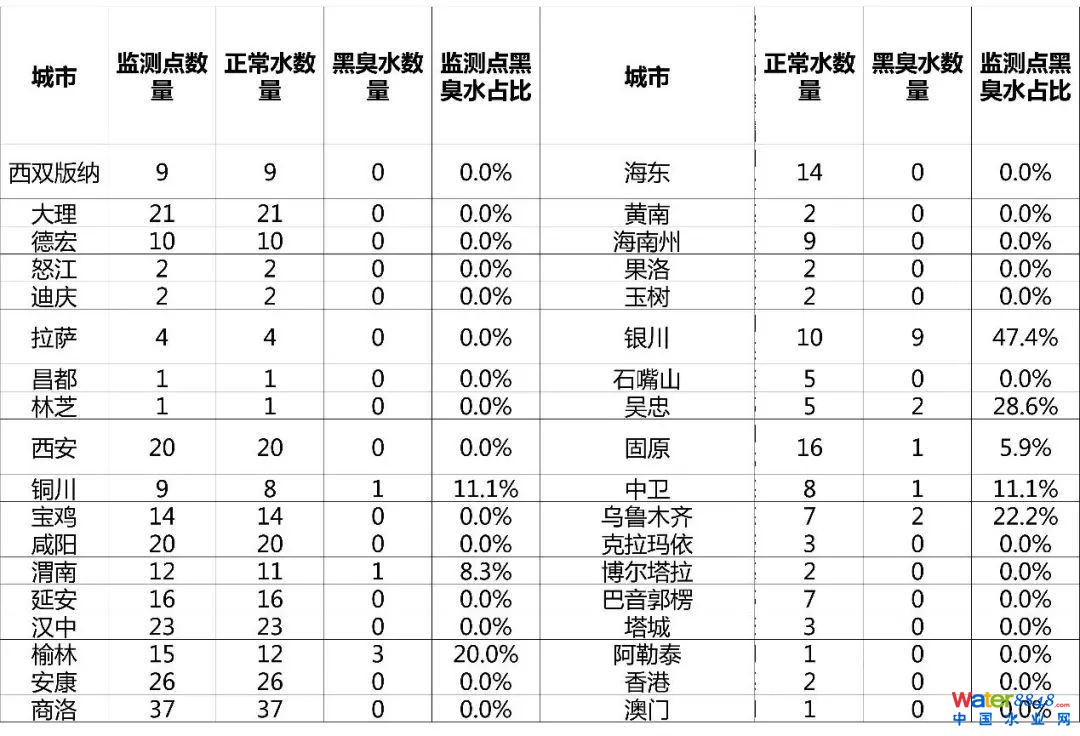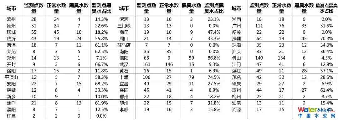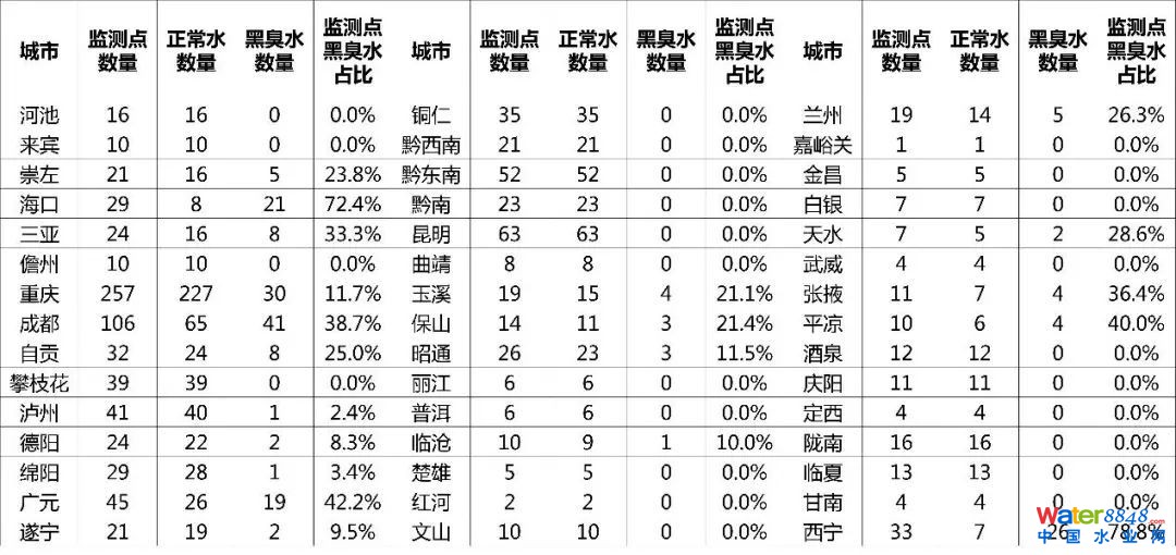 西安、杭州、昆明等城市水質(zhì)情況相對較好,水質(zhì)監(jiān)測點的黑臭水分布幾乎為0;一線城市黑臭水問題相對嚴重。 給水排水 |全國城市“水質(zhì)地圖”出爐,督查曝光的問題不能再有了!