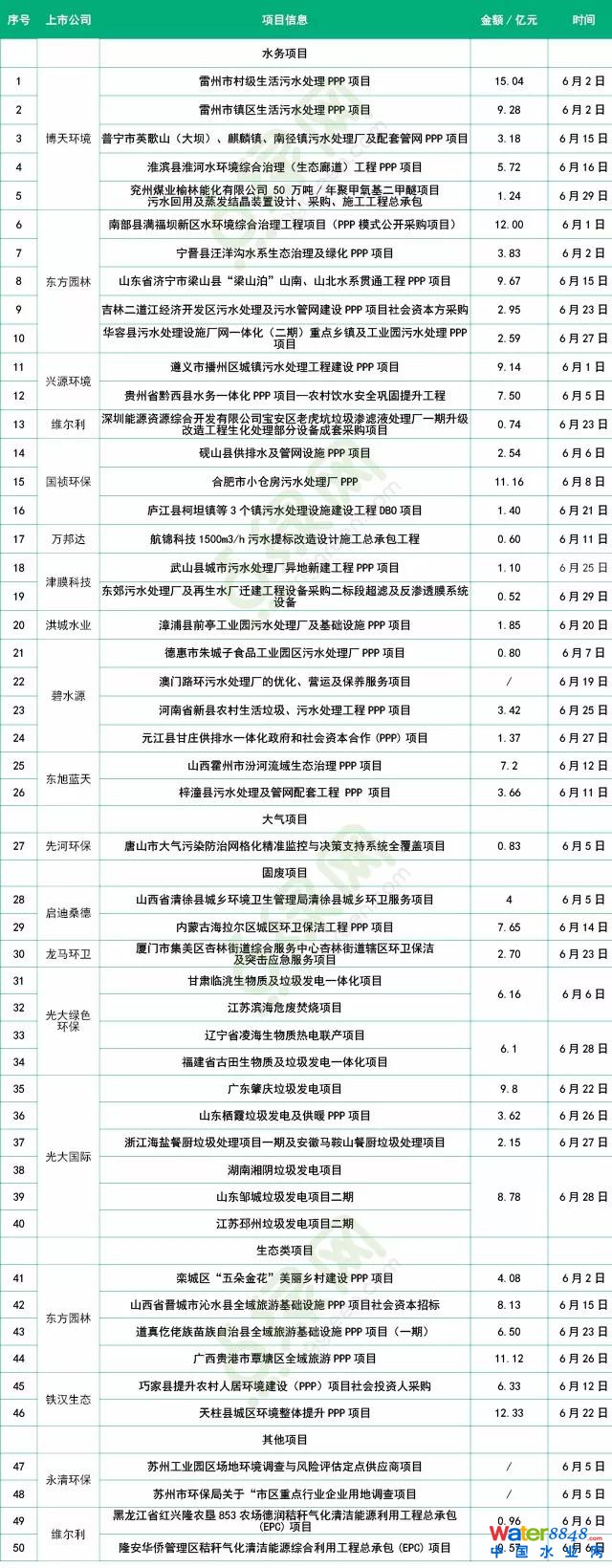 六月環(huán)保上市公司市場情況 中標(biāo)金額逾220億元