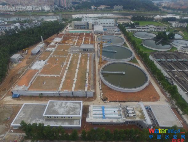 松崗水質凈化廠二期工程現(xiàn)場航拍圖