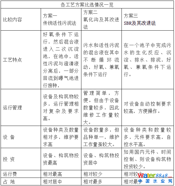 常用污水處理工藝介紹及比較選擇 傳統(tǒng)活性污泥法 氧化溝法 SBR工藝 工藝方案各有其特點(diǎn),比選情況見下表