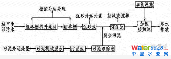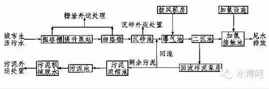 剩余污泥→污泥濃縮池→污泥脫水→外運(yùn)衛(wèi)生填埋。