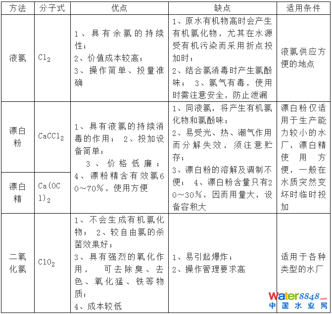 常用的消毒方式有液氯、次氯酸鈉、二氧化氯、紫外線等。消毒方法的詳細(xì)比較見下表: