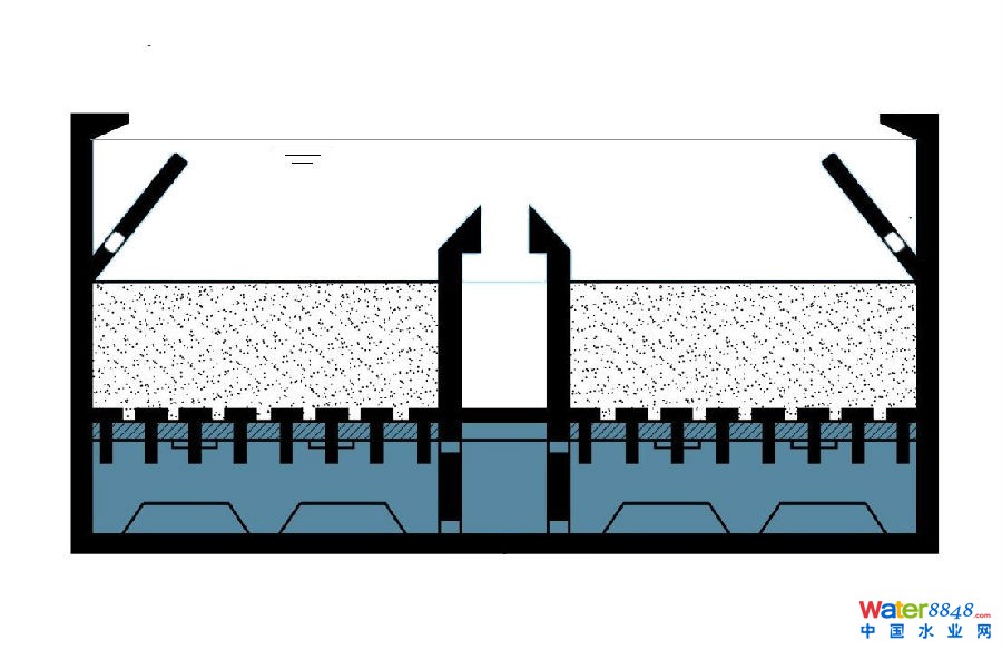 采用均質(zhì)濾料,恒水位、恒流量過(guò)濾,整床納污,過(guò)濾周期長(zhǎng);氣水反沖;全自動(dòng)控制;應(yīng)用范圍廣