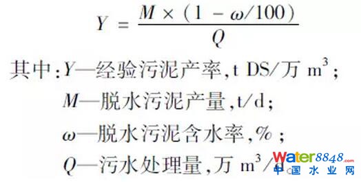 經(jīng)驗(yàn)污泥產(chǎn)率采用式(1)計(jì)算。