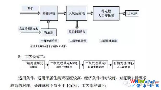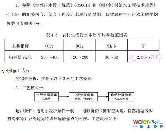 由適用條件不難看出適用于經(jīng)濟(jì)條件一般、土地寬裕,言外之意就是模式一“厭氧+人工濕地”可以簡(jiǎn)單去除有機(jī)物,對(duì)氮磷幾乎沒喲去除作用。而模式二,原文已經(jīng)說明適用于“經(jīng)濟(jì)條件相對(duì)較好、對(duì)氮磷去除要求較高的村莊”。