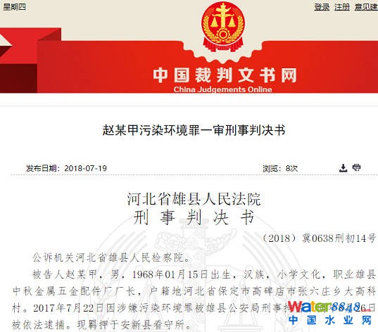 德龍環(huán)境副總經(jīng)理受賄獲刑 任由合作方在雄安新區(qū)排放污水