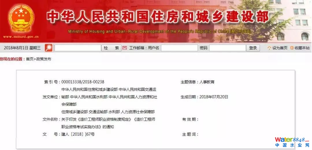 住建部發(fā)文:造價師今年開考,2017年成績依然有效。 中國給水排水 8月3日,住房城鄉(xiāng)建設部發(fā)布《關于造價工程師職業(yè)資格考試有關工作的說明》: