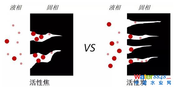 活性焦與活性炭的孔徑結構與吸附性能對比示意
