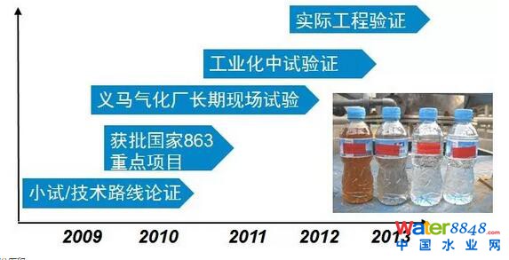2009年是我國煤制天然氣等新型煤化工快速發(fā)展的開局之年,廢水處理與回用問題成為當時影響項目審批和運行的關鍵。研究團隊成立之初就有明確的產(chǎn)業(yè)化目標,即攻克煤氣化廢水處理難關,為2012年首個項目的投標和設計建設提供技術支撐。因此以目標項目進行倒逼,倒排工期,技術開發(fā)產(chǎn)業(yè)化是按照系統(tǒng)工程的思維進行整體統(tǒng)籌的,在各關鍵時點都配置了大量的資源。