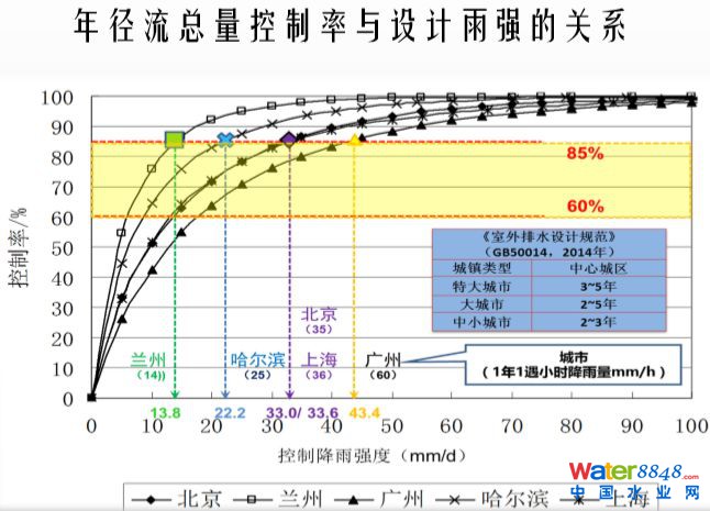 2015年國(guó)務(wù)院發(fā)布的《國(guó)務(wù)院辦公廳關(guān)于推進(jìn)海綿城市建設(shè)的指導(dǎo)意見》已經(jīng)明確指出通過(guò)海綿城市建設(shè),綜合采取“滲、滯、蓄、凈、用、排”等措施,最大限度地減少城市開發(fā)建設(shè)對(duì)生態(tài)環(huán)境的影響,將70%的降雨就地消納和利用。其中,70%的降雨控制率是根據(jù)我國(guó)的水文本底狀況圖得出的,美國(guó)目前的降雨控制率為90%。這是大概率、小降雨的累積量,我們的目的就是要“潤(rùn)物細(xì)無(wú)聲”的把水留下來(lái)。