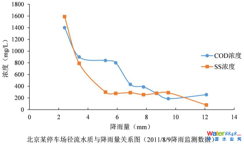 北京建筑大學(xué)通過(guò)對(duì)北京和上海的調(diào)研,累積出一個(gè)關(guān)于北京某停車場(chǎng)的徑流水質(zhì)與降水量的關(guān)系圖。所用的水質(zhì)指標(biāo)是SS和COD。從圖中可以看出,隨著降雨量的增加,SS和COD的濃度都表現(xiàn)出明顯的下降趨勢(shì),這說(shuō)明降雨強(qiáng)度越大,SS和COD的去除率越高。這為海綿設(shè)施的建設(shè)提供了一個(gè)基本的指標(biāo)參數(shù)。不同的區(qū)域?qū)S污染徑流的控制率不同,美國(guó)西部地區(qū)對(duì)SS徑流的控制率為60%,而東部地區(qū)對(duì)SS的控制力度相對(duì)較大,為90%,這同時(shí)也說(shuō)明了美國(guó)東部地區(qū)的降水徑流的控制率高于90%。據(jù)統(tǒng)計(jì),美國(guó)東部地區(qū)最高的降水徑流是控制到一英寸多,即31mm。我國(guó)對(duì)徑流污染的控制率也是60%,這個(gè)值要比量的控制率(降雨徑流控制率)低的多。因此將來(lái)我們?cè)谶M(jìn)行控制率設(shè)定時(shí),要同時(shí)參考這兩個(gè)值,然后取其最大值。