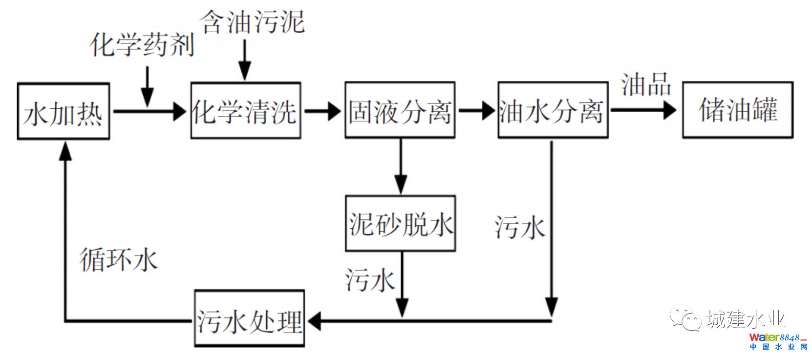 2011年西北油田建成中石化系統(tǒng)第一座化學(xué)熱洗泥油處理站,形成了基于“熱化學(xué)清洗+摻煤焚燒”的油泥無(wú)害化處理工藝,據(jù)報(bào)道,油泥經(jīng)過(guò)處置,分離出的泥餅石油類(lèi)含量從處理前的18 mg/g降低到0.82 mg/g,屬于一般固體廢棄物。而分離出的凈化油,含水量小于10%,達(dá)到了采油廠的收油標(biāo)準(zhǔn),實(shí)現(xiàn)了變廢為寶。
