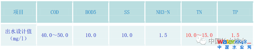 改造后二級(jí)出水設(shè)計(jì)水質(zhì)