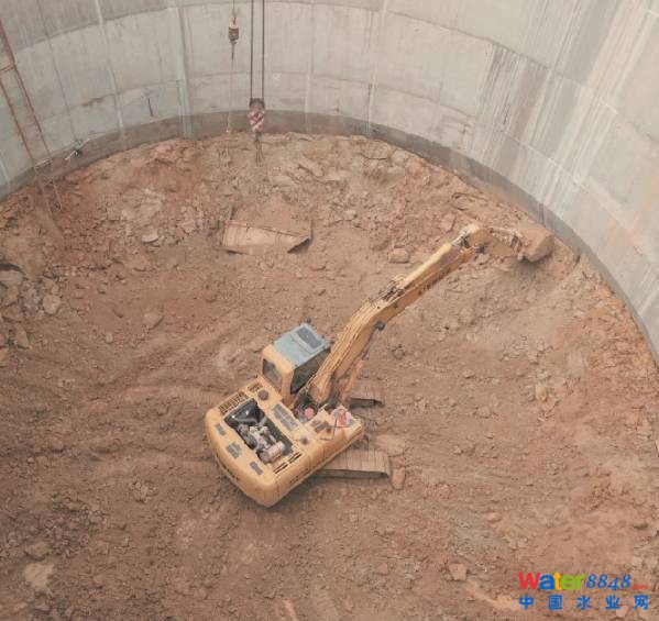 4)往標(biāo)準(zhǔn)層內(nèi)腔一次性澆筑鋼筋混凝土,繼續(xù)開(kāi)挖出土,直至該層井筒下沉到位;