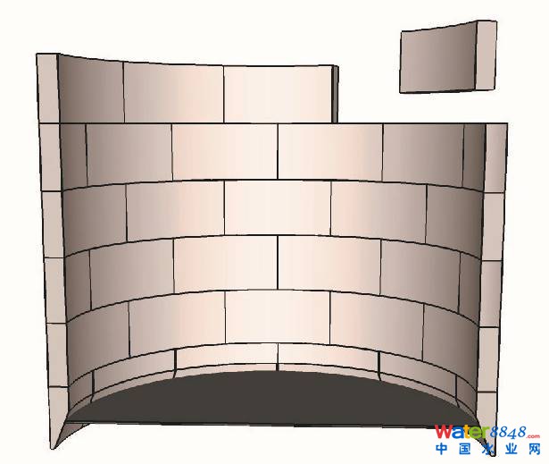 3)吊裝標(biāo)準(zhǔn)塊與已安裝的井筒頂部拼接,并將相鄰標(biāo)準(zhǔn)塊依次拼接,構(gòu)成井筒上一層。拼裝時(shí)不僅要保證井筒的垂直度及塊體穩(wěn)定性,還要注意不使相鄰層的豎向拼縫在同一豎向線內(nèi)。