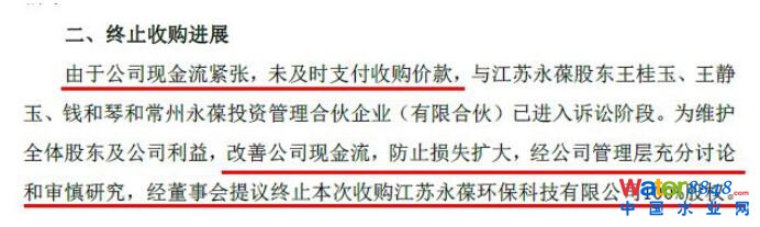 科融環(huán)境于9月11日發(fā)出終止收購永葆環(huán)保股權(quán)的公告稱,由于公司現(xiàn)金流緊張,未及時支付收購價款,公司與永葆環(huán)保股東已進(jìn)入訴訟階段。為了改善公司現(xiàn)金流,防止損失擴(kuò)大,董事會提議終止本次收購。