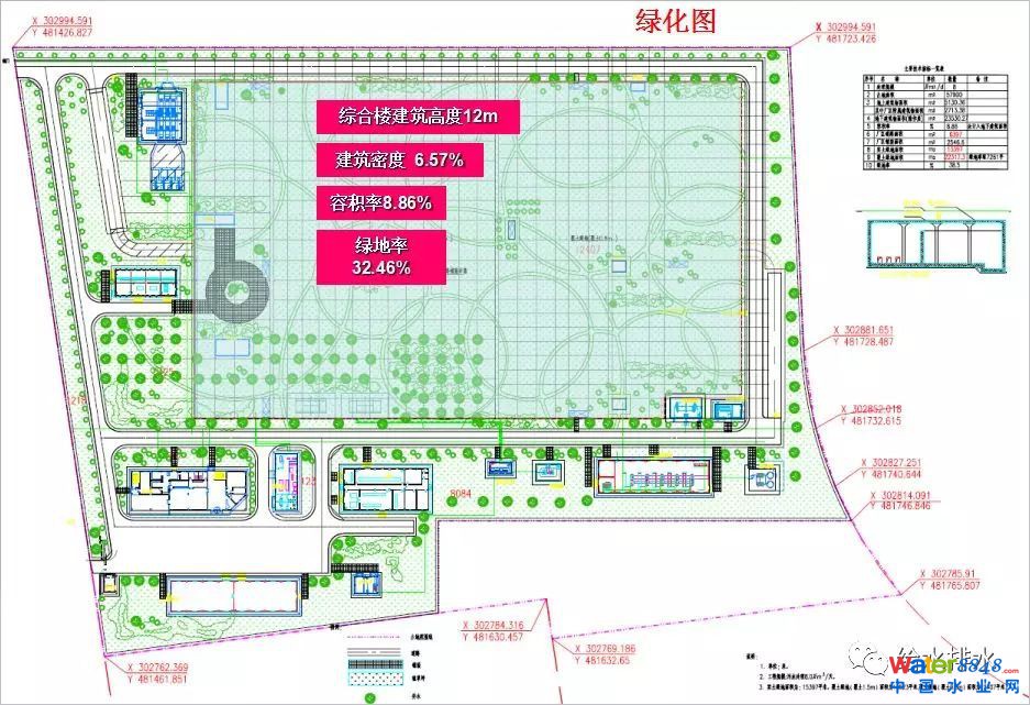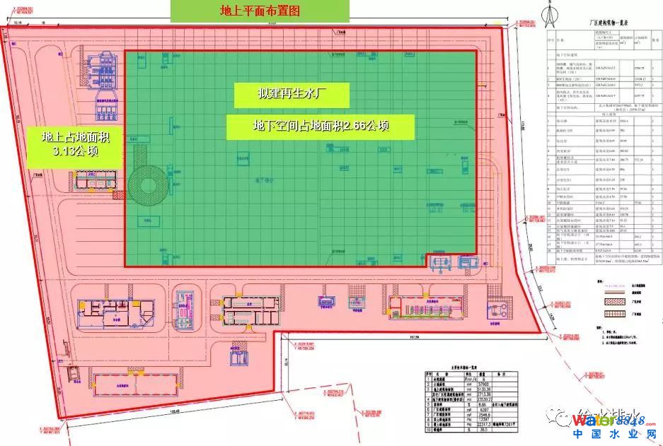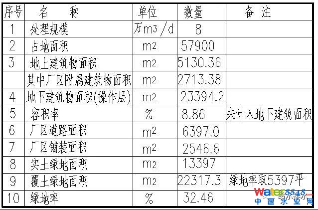 工程為8萬(wàn)噸處理規(guī)模,占地面積5.79公頃,整個(gè)處理廠(chǎng)地下部分地下部分2.66公頃其他為地上部分。整個(gè)處理廠(chǎng)地下部分最深的地方埋深在16米,建好的地下部分,地下廠(chǎng)的上面有一米多的覆土,它的整體地方,整個(gè)廠(chǎng)的綠化率,如果不算廠(chǎng)的部分是32%的綠化率。
