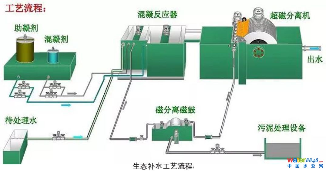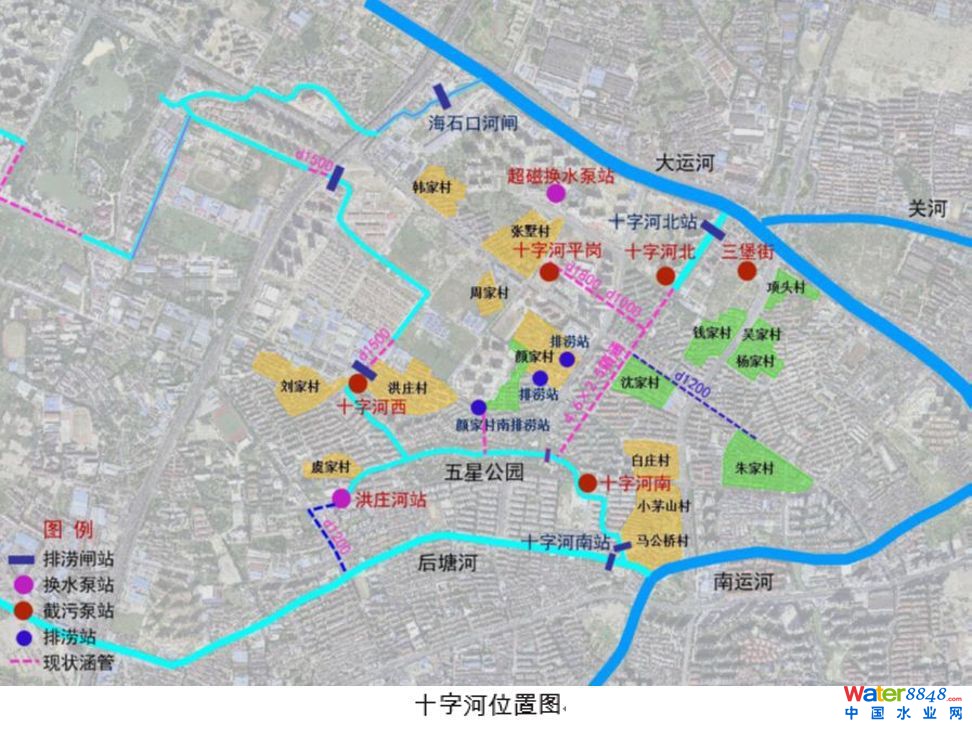 結(jié)合項(xiàng)目區(qū)域位置特點(diǎn),充分利用周邊京杭運(yùn)河優(yōu)質(zhì)水質(zhì),在充分深入調(diào)研各種水環(huán)境治理技術(shù)的基礎(chǔ)上,將超磁分離技術(shù)與黑臭河道治理相結(jié)合,在三堡街北側(cè)陶家村綠地內(nèi)建設(shè)取水泵房一座(1.5萬(wàn)噸/天),運(yùn)河水經(jīng)超磁處理成套設(shè)備混凝沉淀后通過(guò)新建的2kmD700壓力管道補(bǔ)充至五星公園水體,一方面可加強(qiáng)河道水體的流動(dòng),提升河道水動(dòng)力;另一方面通過(guò)補(bǔ)充新鮮的潔凈水源,進(jìn)一步改善河道本體水質(zhì),加速河道生態(tài)功能的恢復(fù)。同時(shí)與水利部門(mén)構(gòu)建聯(lián)動(dòng)機(jī)制,通過(guò)十字河南泵站和洪莊河泵站實(shí)現(xiàn)十字河與后塘河的有效溝通,增強(qiáng)引排能力,使水系保持良性循環(huán)。