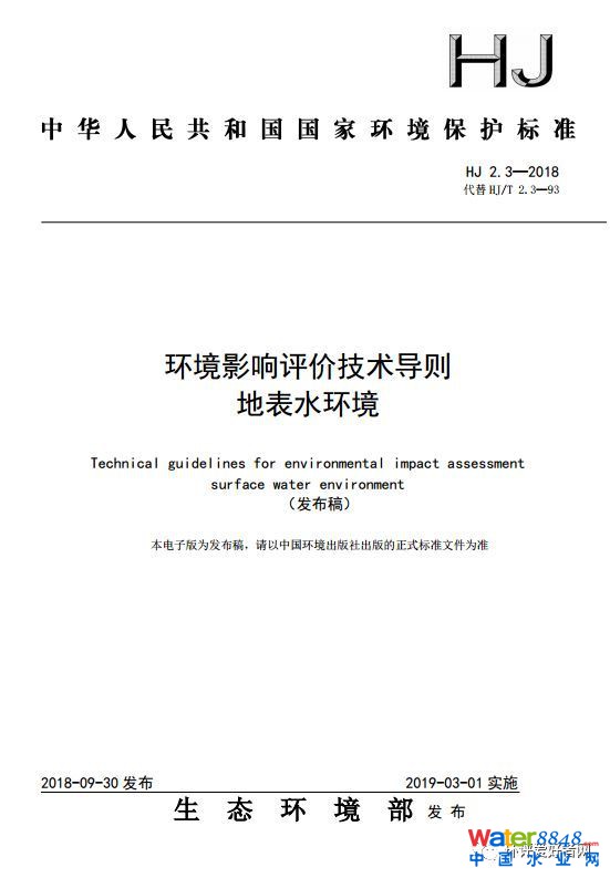 新《環(huán)境影響評(píng)價(jià)技術(shù)導(dǎo)則 地表水環(huán)境》(HJ 2.3-2018)發(fā)布,自2019年3月1日起實(shí)施