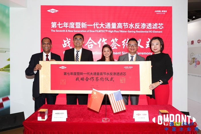 2018116日,中國上海—— 陶氏杜邦特種產(chǎn)品旗下陶氏水處理解決方案業(yè)務(wù)部(陶氏水處理)今日在中國國際進(jìn)口博覽會(huì)上(CIIE)與深圳安吉爾飲水產(chǎn)業(yè)集團(tuán)有限公司(安吉爾),浙江朗詩德健康飲水設(shè)備股份有限公司(朗詩德)分別舉行戰(zhàn)略合作儀式,在中國家用凈水領(lǐng)域與雙方展開深入、廣泛的合作,旨在為消費(fèi)者帶來高品質(zhì)的飲水體驗(yàn), 創(chuàng)造更舒適的健康飲水環(huán)境。