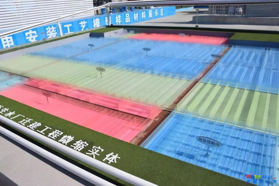 1:90的工程微縮景觀,直觀形象地展示了污水層層凈化的過程,并結(jié)合工藝特點,建造了生物池、深床濾池、過水花墻、池壁等質(zhì)量樣板,踐行中建八局“質(zhì)量樣板先行”的管理理念。