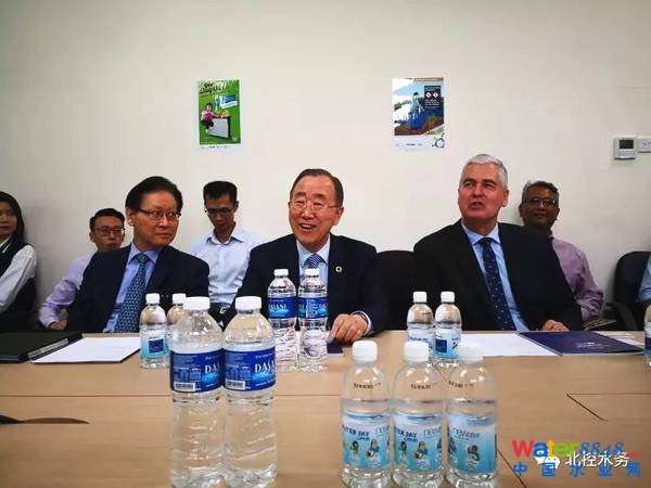 潘基文考察北控水務(wù)新加坡樟宜新生水廠 北控水務(wù)集團(tuán)高級(jí)副總裁楊光,清華大學(xué)-北控水務(wù)集團(tuán)環(huán)境產(chǎn)業(yè)聯(lián)合研究院院長(zhǎng)、清華大學(xué)環(huán)境學(xué)院教授王凱軍,北控水務(wù)水環(huán)境研究院常務(wù)副院長(zhǎng)馮艷霞,新加坡項(xiàng)目特