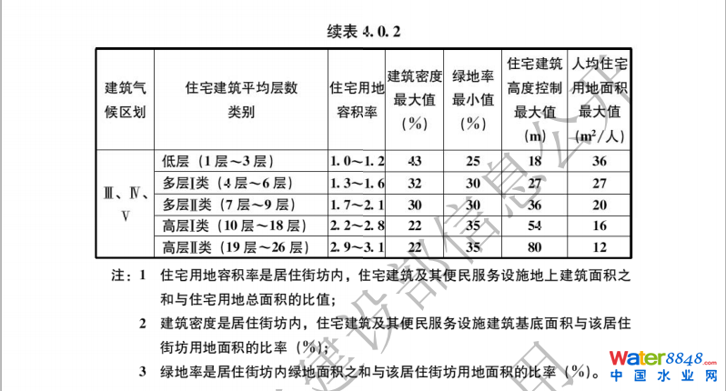 4.0.2居住街坊用地與建筑控制指標(biāo)應(yīng)符合表4. 0. 2的規(guī)定。