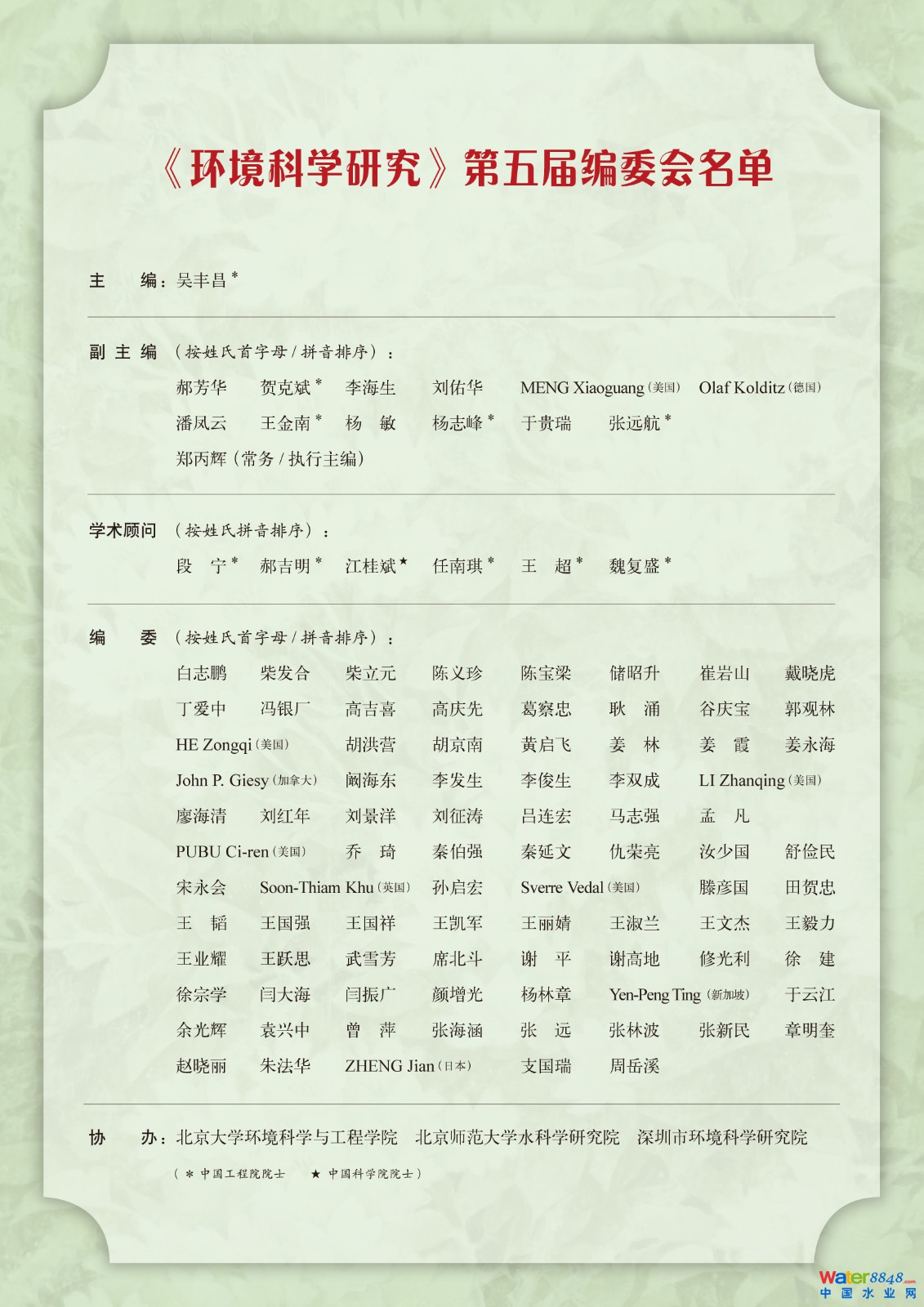 《環(huán)境科學(xué)研究》編委會(huì)由全國(guó)最著名的研究機(jī)構(gòu)——中國(guó)環(huán)境科學(xué)研究院及其相關(guān)研究所,中國(guó)科學(xué)院有關(guān)研究所;著名大學(xué)環(huán)境學(xué)院,如北京大學(xué)、清華大學(xué)、浙江大學(xué)、南京大學(xué)、南開大學(xué)等著名資深院士、研究員、教授、博士生導(dǎo)師組成。
